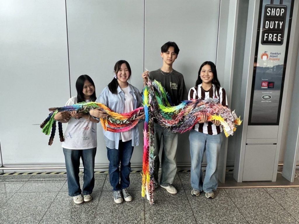 ドイツでは,ホームステイをしながら現地の学校に通いました。最初の数カ月間は,初めてのドイツ語や,ディスカッションや対話が中心の授業など,慣れないことばかりで苦労したと語る西田さん。その数カ月を乗り切ると楽しめるようになり,「自分も何か挑戦してみたい」と,現地でボランティア活動をしたり,平和を願う千羽鶴プロジェクトを立ち上げたり,積極的に行動するようになったそうです。
