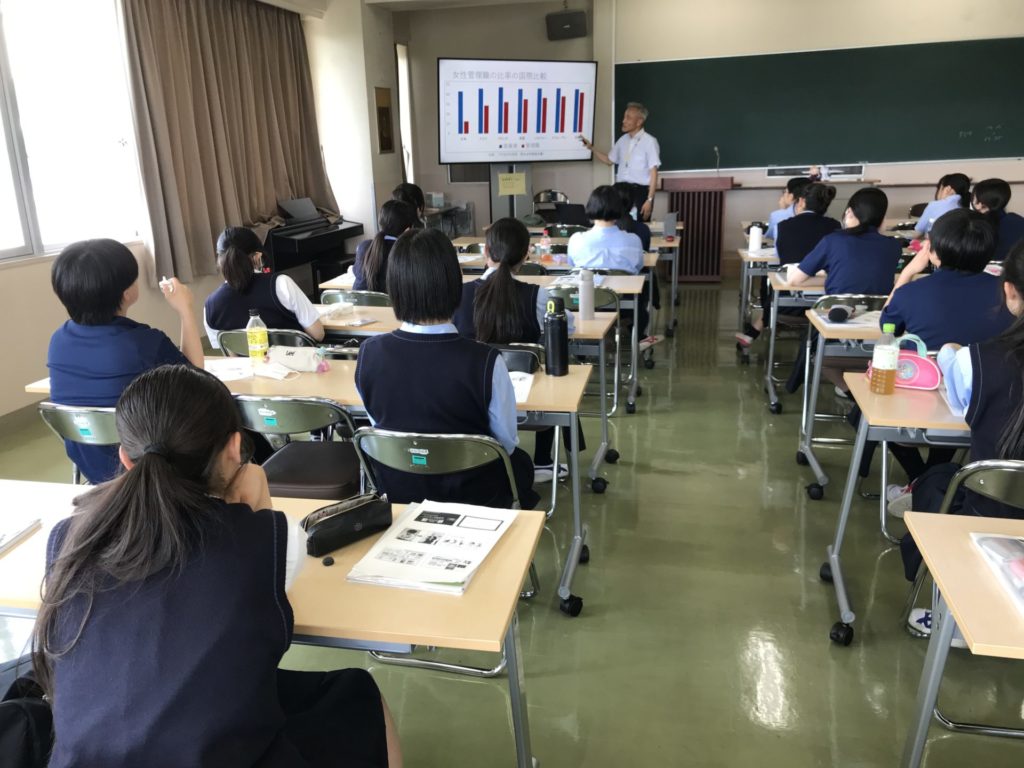 大学生のOGを招いて受験体験を語ってもらうほか,卒業生と質疑応答ができる懇談会や,大学入試のしくみの解説,進路適性検査,進路に関する悩みごと共有など,盛りだくさん。1日がかりのイベントです。進路部部長の清水萌子先生は「2年次の文理選択に備え,進路についてじっくりと考える機会になっています」と言います。