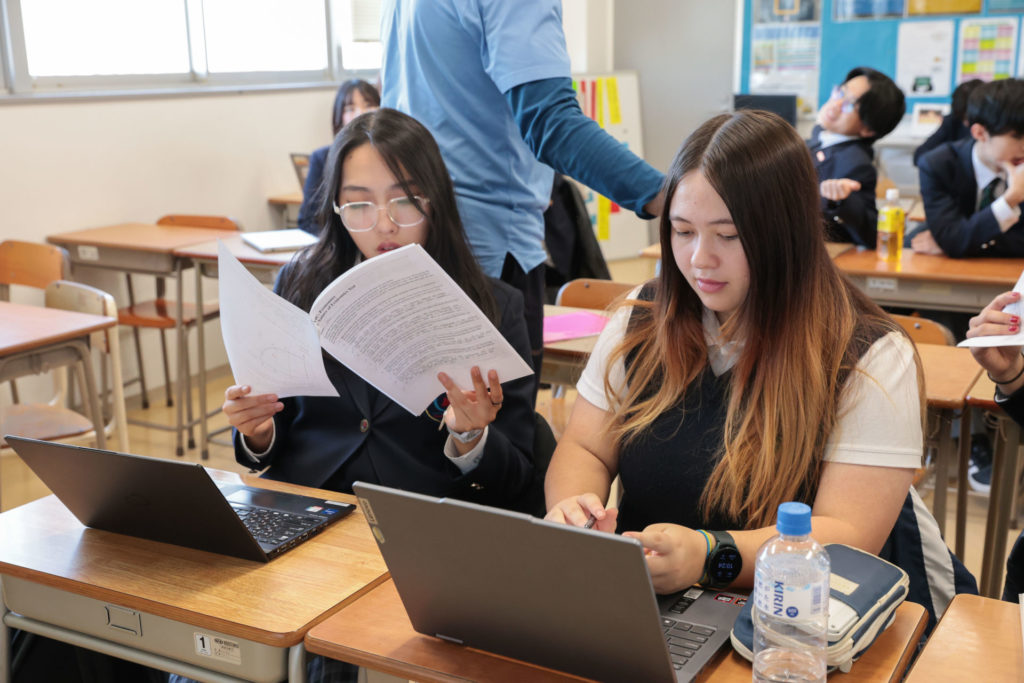 生徒は課題に取り組み,プレゼンテーションしてフィードバックを受け,修正や調整をして次の目標を設定といったトレーニングを重ね,主体的な学び方を習得します。クリティカルシンキングを鍛える教育に,最初は戸惑う生徒もいますが,1クラス10~20名の少人数制で,教員が一人ひとりに必要なサポートをするので心配ありません。高い英語力に加え,欧米式の学びの“コツ”や“クセ”の体得が,海外大進学,その先にあるグローバル社会での活躍へとつながっています。